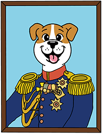 Egal ob Hund, Katze oder Pferd, wir verwandeln Deinen Vierbeiner in ein personalisiertes Tierportrait und kreieren so ein einzigartiges Kunstwerk auf Basis deiner Fotovorlage. Mit Liebe erschaffen wir ein ganz besonderes Tierportrait Deines Haustieres - ob als König in Uniform, als Prinzessin oder als eines der vielen anderen tollen Motive. Suche einfache das zu Deinem Tier passende Motive aus, wir erledigen den Rest und erstellen ein besonderes Portrait Deines geliebten Tieres.